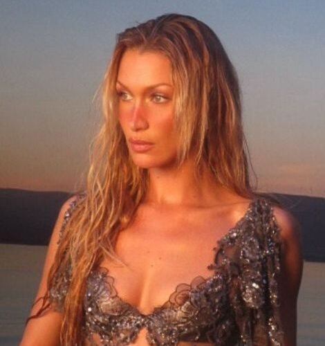 The styling was revealing, but still controlled. That is usually where Bella stands out. She tends to push a daring look just far enough, then balances it with clean lines, sharp proportions, and a strong editorial mood. Here, the shimmer and transparency did most of the work, while the overall silhouette stayed sleek and deliberate.